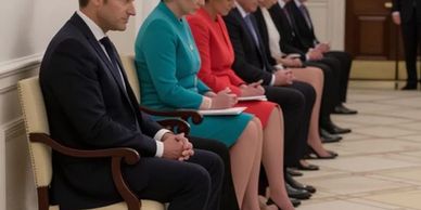 This image did the rounds on social media in the summer of 2025. It purported to show President Macron of France, and other European leaders, lined up like humble supplicants outside Donald Trump's office. It doubtless enraged many Europeans, and encouraged MAGA supporters. However, unless President Macron has grown an extra pair of legs, you can see that the image is faked. This line-up never happened.